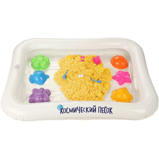 Кинетический песок Космический песок Набор с формочками и надувной песочницей, желтый, 1 кг, картонная пачка