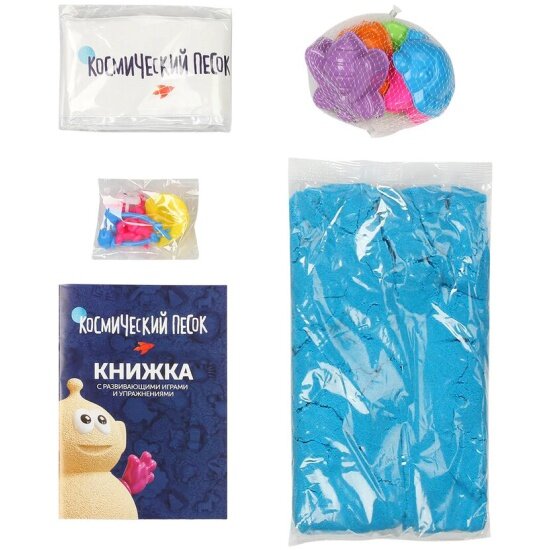 Космический песок Голубой 1кг (песочница+формочки)