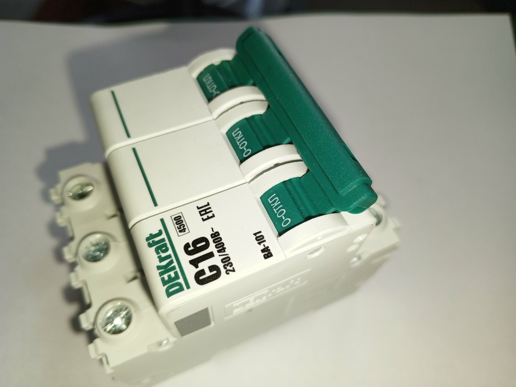 Отзывы на Выключатель автоматический трехполюсный 16А С ВА-101 4.5кА DEKraft (комплект 3шт)