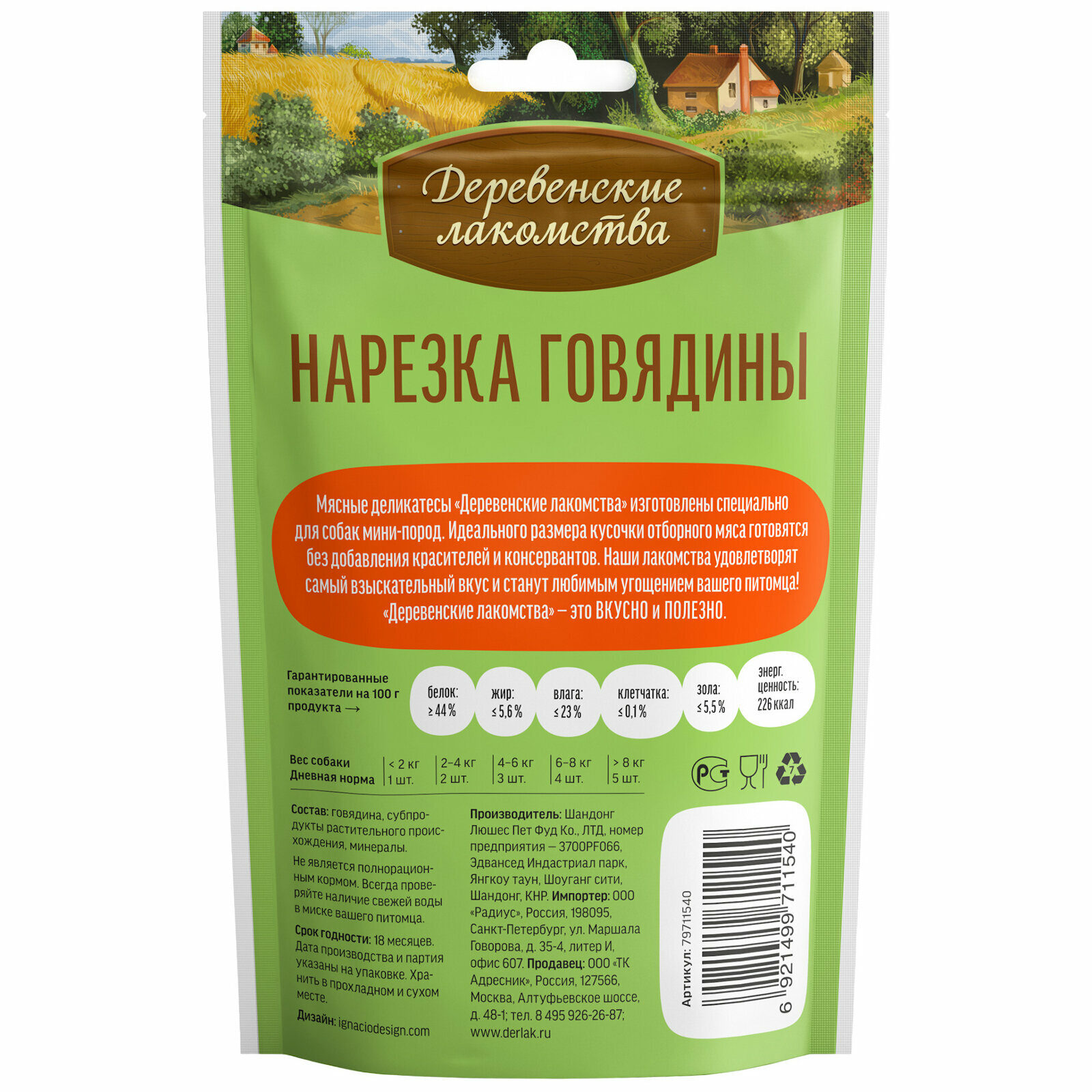 Деревенские лакомства 5шт х 55г нарезка говядины для собак мини-пород информация: