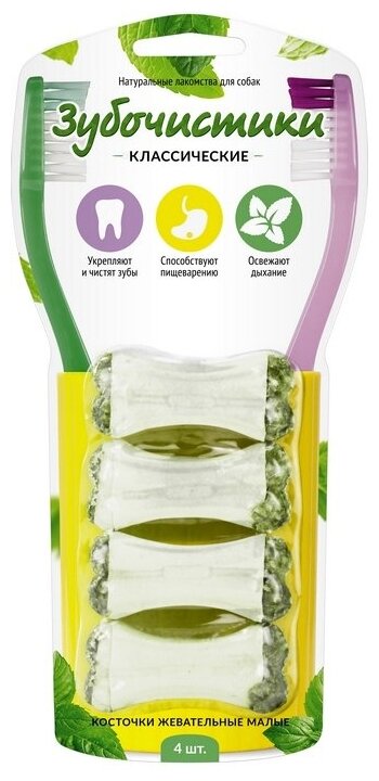 Зубочистики Классические Лакомство д/собак Косточки жевательные малые 4 шт 76 г информация:
