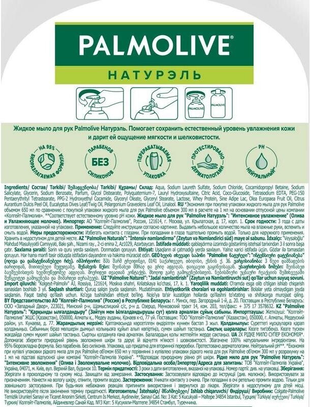 Жидкое мыло Palmolive Олива и увлажняющее молочко 650 мл. информация: