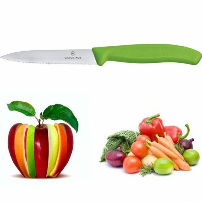 Отзывы на Нож для овощей VICTORINOX Swiss Classic, лезвие 10 см с волнистой заточкой, зелёный 6.7736.L4