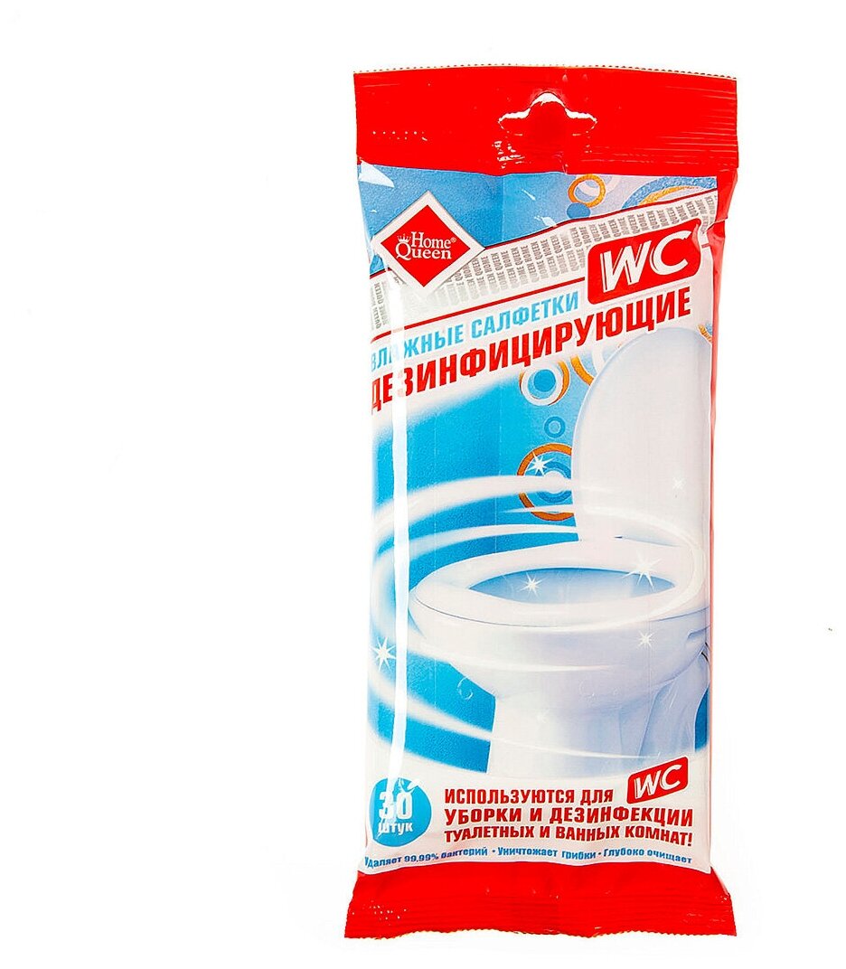 10 цен на Салфетка влажная дезинфицирующая в упаковке 30 штук Home Queen