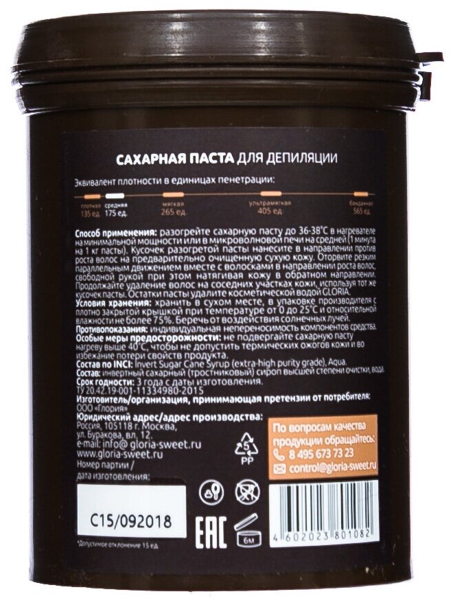 Gloria Паста для шугаринга средняя в банке 330 г информация: