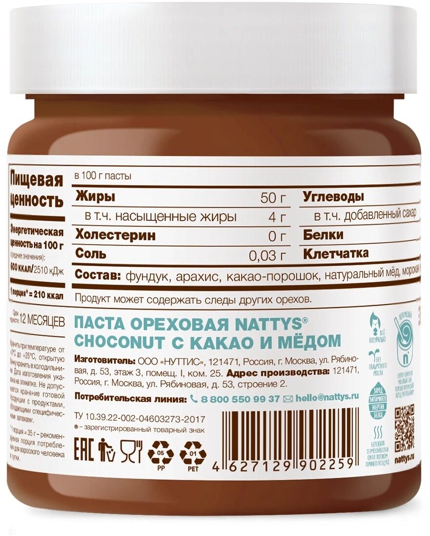 Ореховая паста Nattys Choconut с какао и мёдом, 525 гр информация: