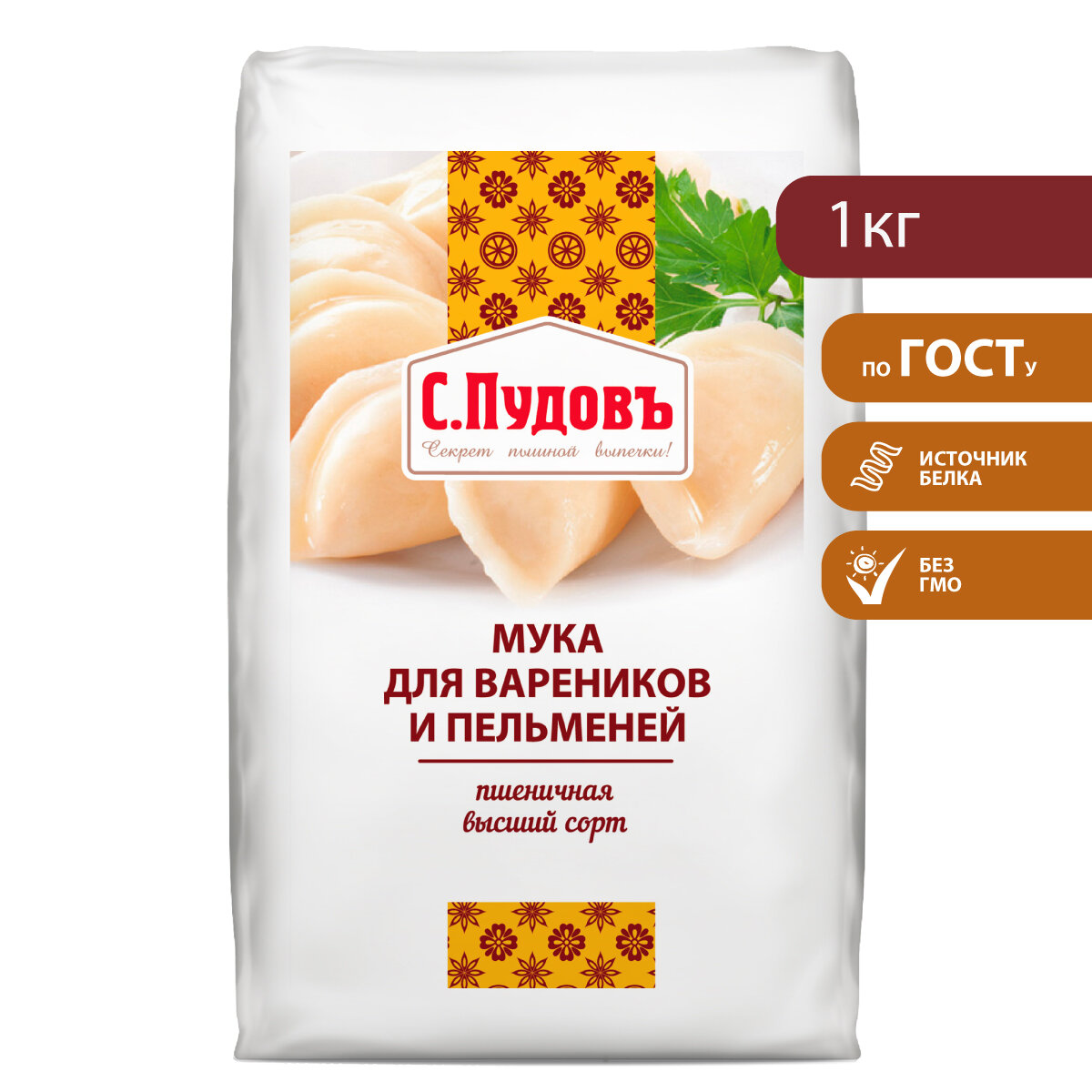 Мука пшеничная хлебопекарная высший сорт для вареников и пельменей С.Пудовъ, 1 кг информация: