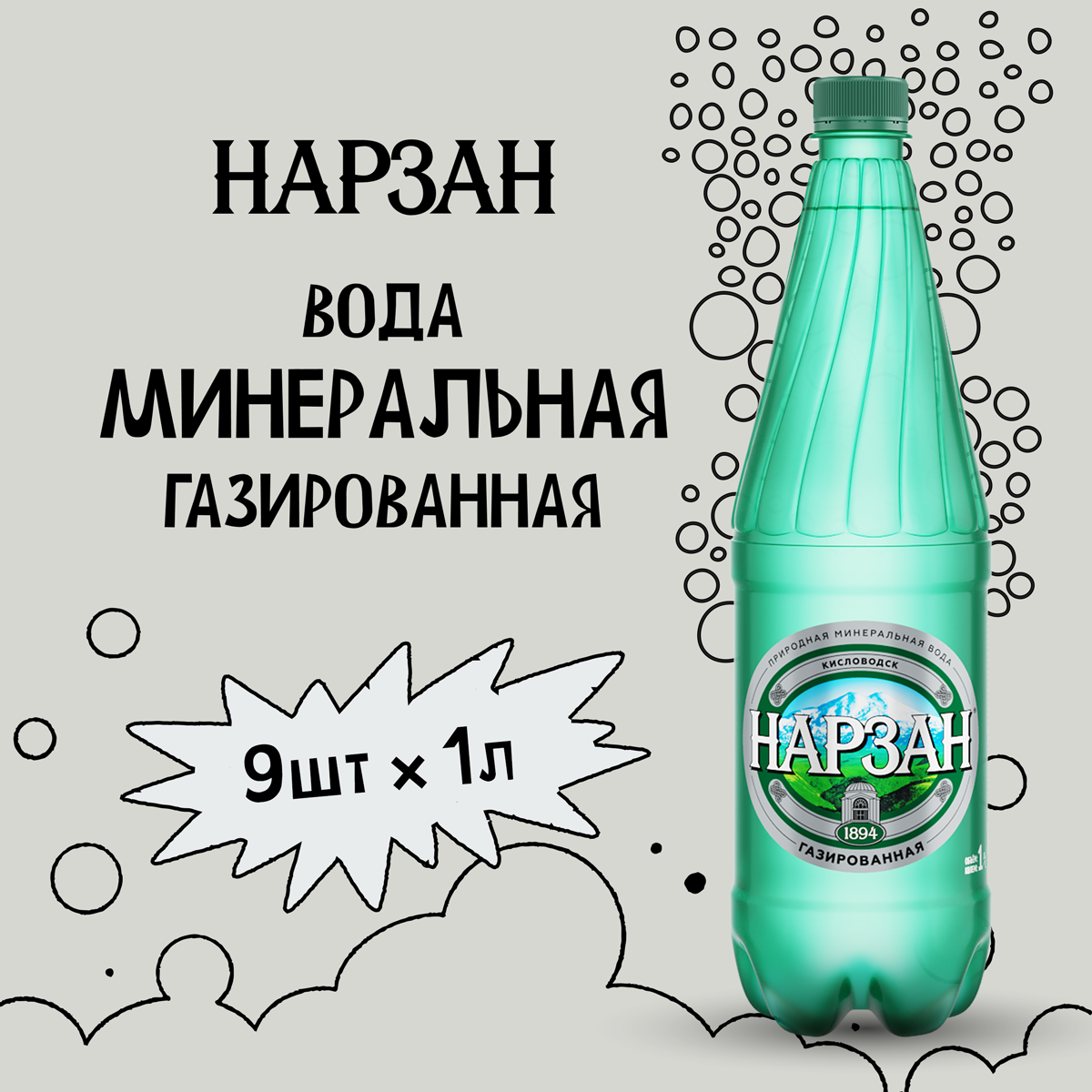 Минеральная лечебно-столовая вода Нарзан газированная, ПЭТ, 9 шт. по 1 л 1 213 ₽