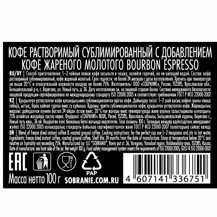 Кофе Bourbon Espresso растворимый, 100 г информация: