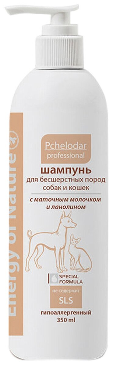 Шампунь Пчелодар Professional Energy of Natural с маточным молочком и ланолином для собак и кошек бесшерстных пород , 350 мл