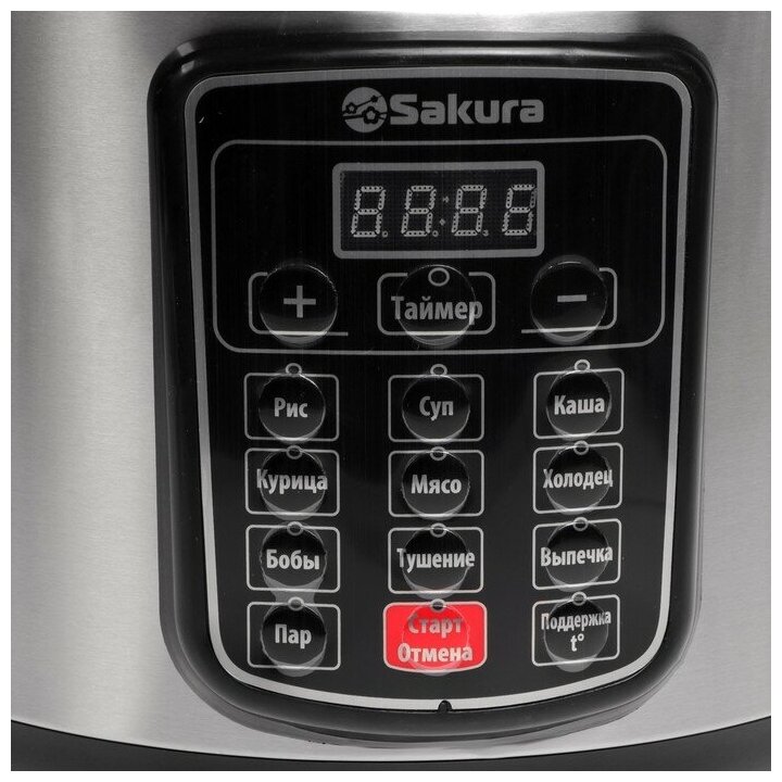 Мультиварка Sakura Sa-7764bs. 900 Вт, 5 л, 10 программ, покрытие нерж.сталь, серо-чёрная Sakura 9438