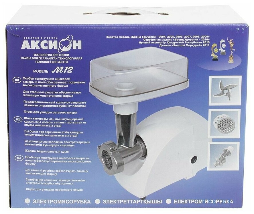 Мясорубка Аксион М321, 1500 Вт, реверс, защита двигателя, насадки для кеббе и колбас