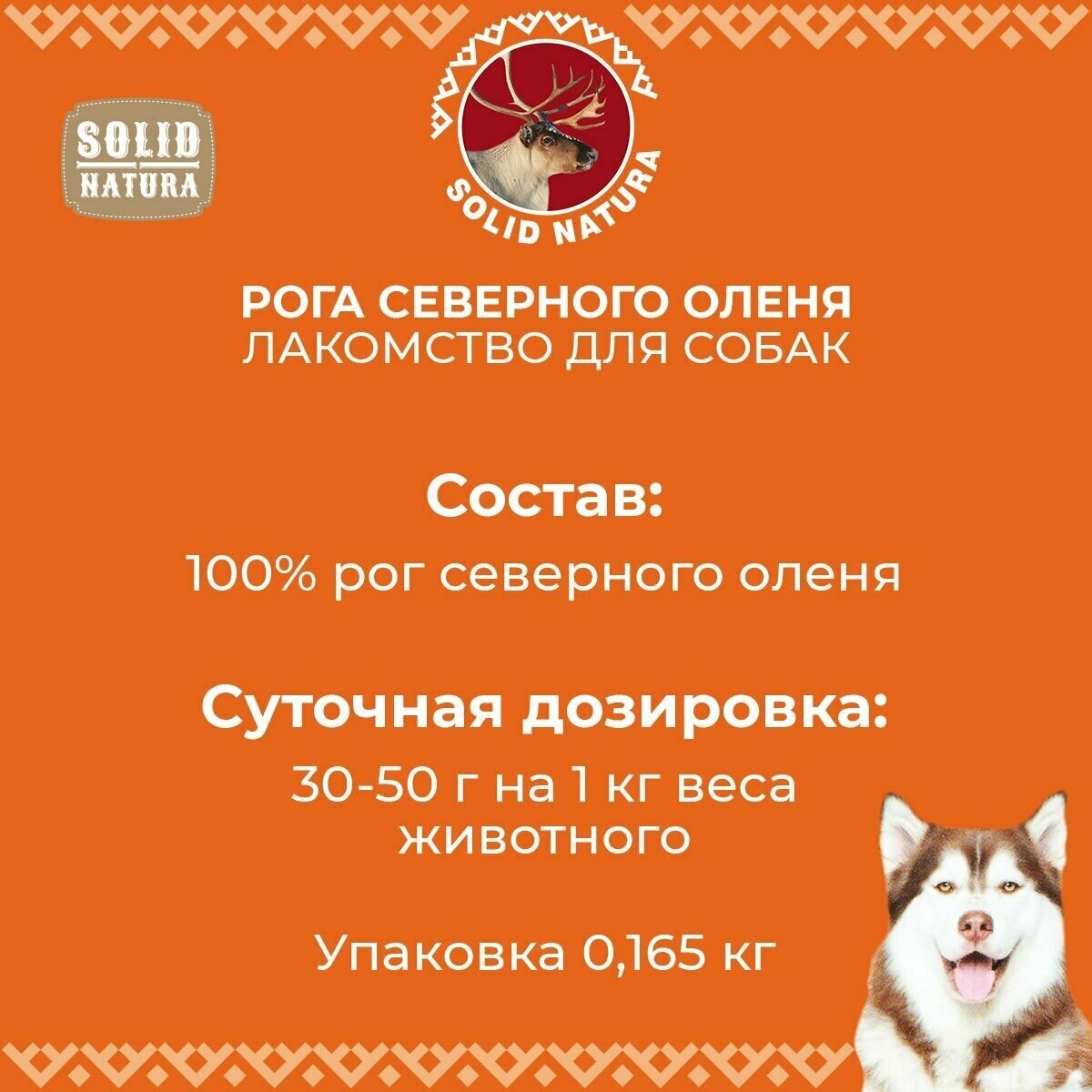 Лакомство для собак Solid Natura Рога северного оленя №4, 165 г