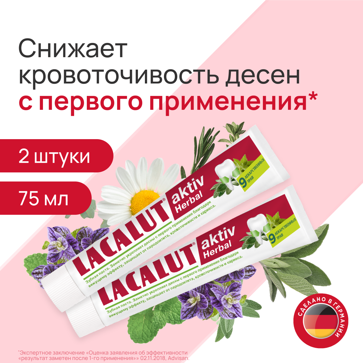 Зубная паста LACALUT Aktiv Herbal 75 мл. х 2 шт.
