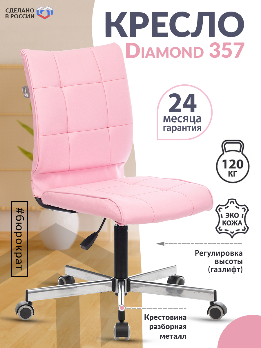 Отзывы на Кресло Бюрократ CH-330M светло-розовый Diamond 357 искусственная кожа крестовина металл