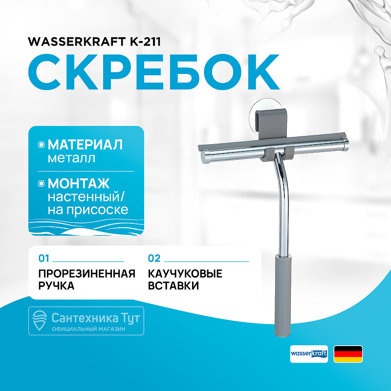 Скребок для стеклянных ограждений и душевых кабин WasserKRAFT 211 9060733 3 720 ₽