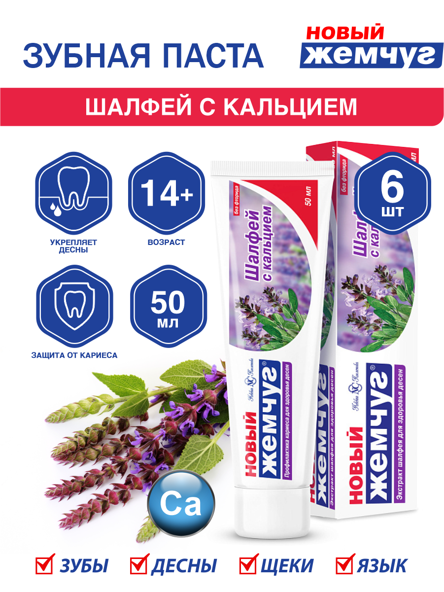 Зубная паста Новый Жемчуг Шалфей с кальцием 50 мл. х 6 шт. информация: