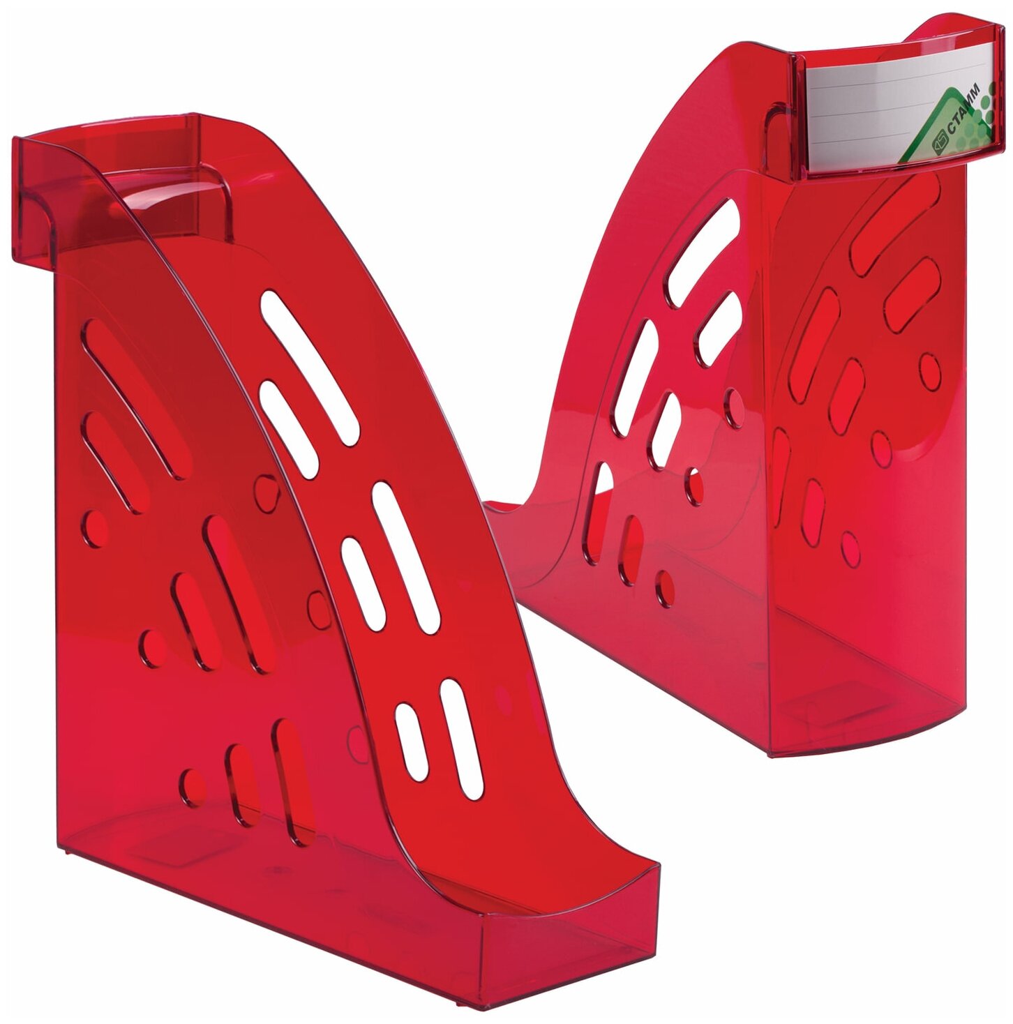 Отзывы на Лоток для бумаг СТАММ вертикальный, "Торнадо", ширина 95 мм, тонированный темно-красный (вишня) (ЛТ407)