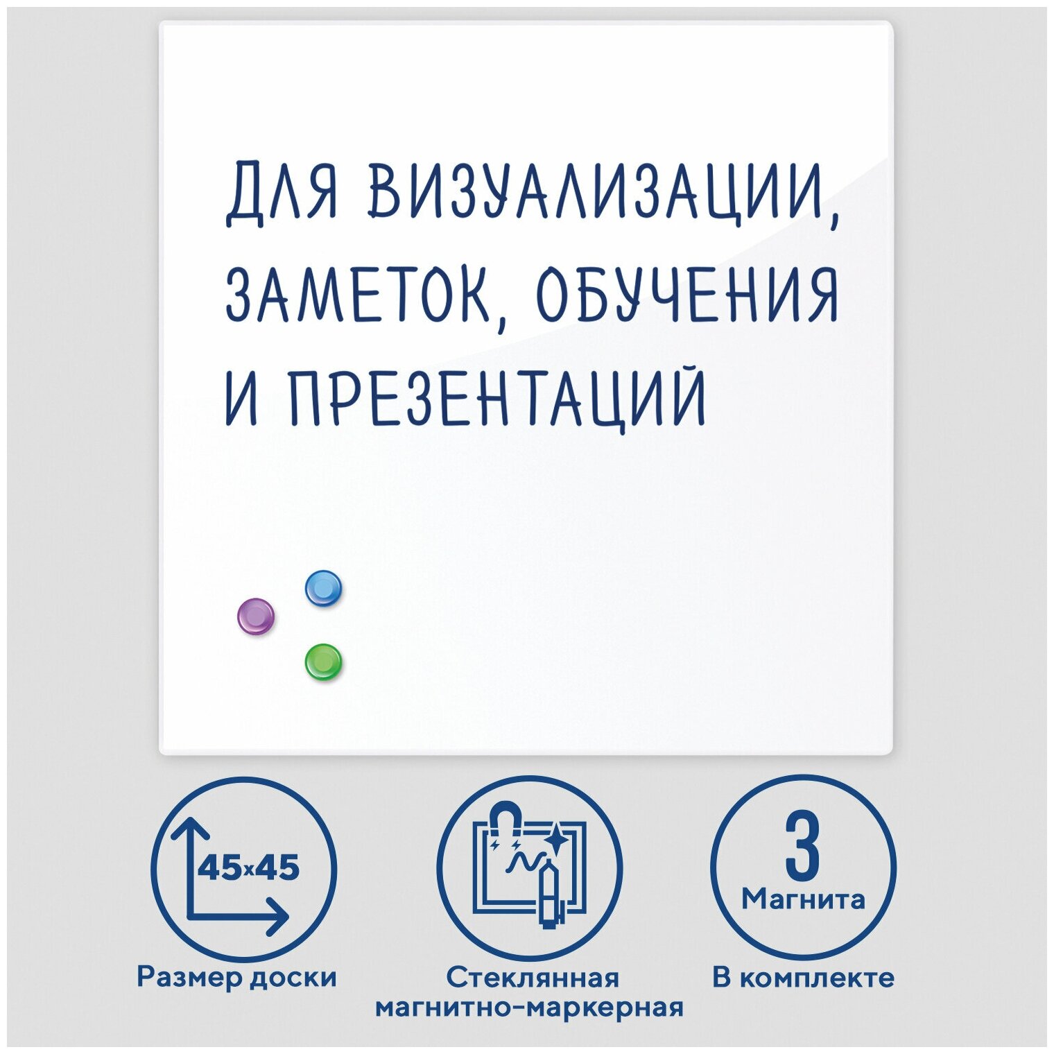 Доска магнитно-маркерная стеклянная (45×45 см), 3 магнита, белая, BRAUBERG