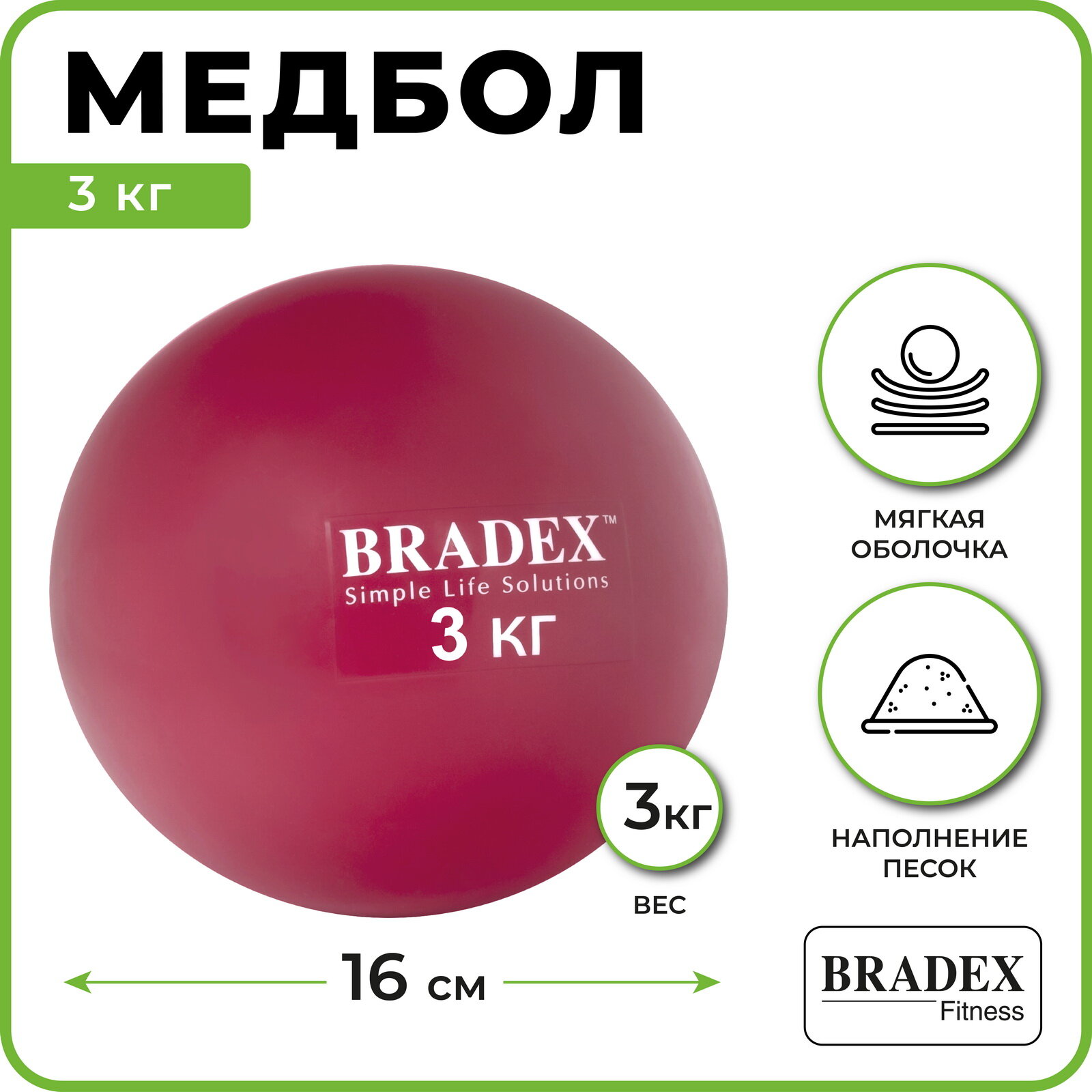 Медбол 3 кг Bradex, спортивный резиновый мяч для фитнеса и кроссфита 690 ₽