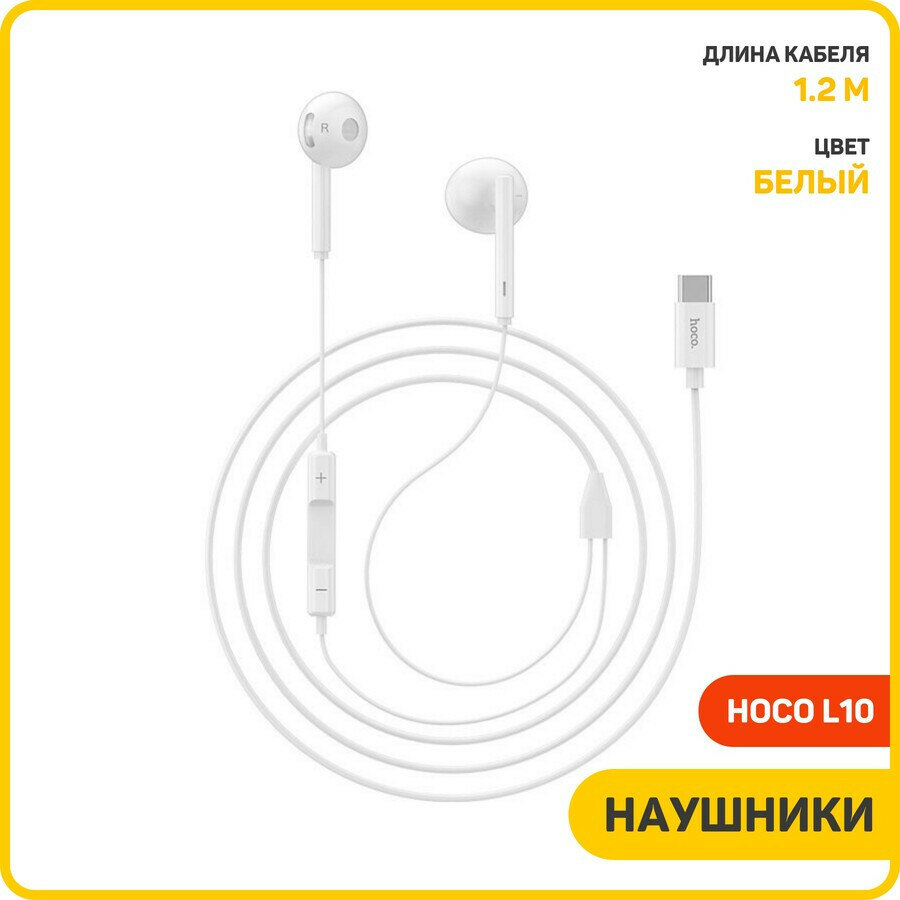 Наушники L10, Type-C, HOCO, вакуумные с микрофоном, белые
