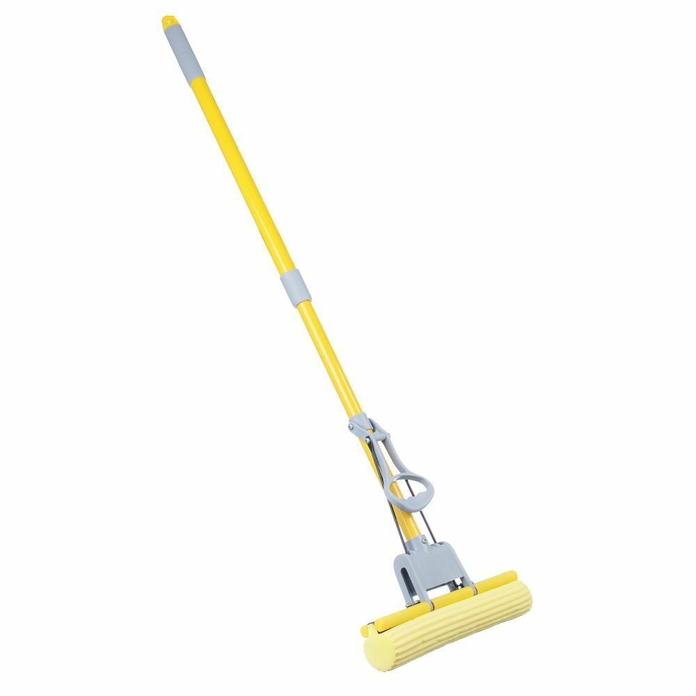 Швабра для мытья полов с отжимом Vetta, с насадкой ПВА, телескопическая ручка 120 см, 1 ряд роликов