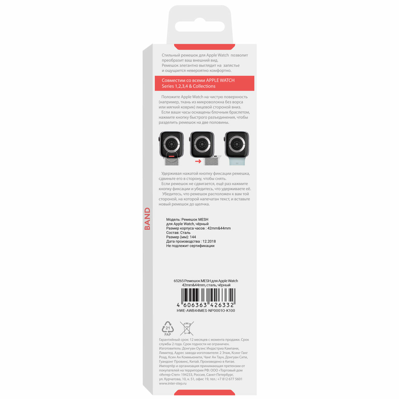 Ремешок InterStep S8/SE 42/44/45 MESH Apple Watch, сталь, чёрный информация: