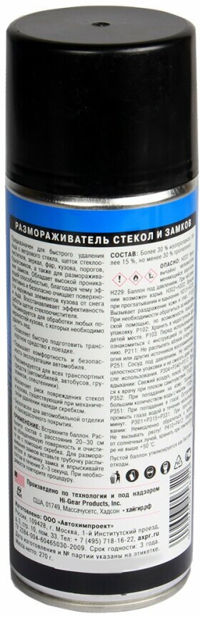 Размораживатель стекол и замков Hi-Gear, аэроз.325гр (1/12) 759 ₽