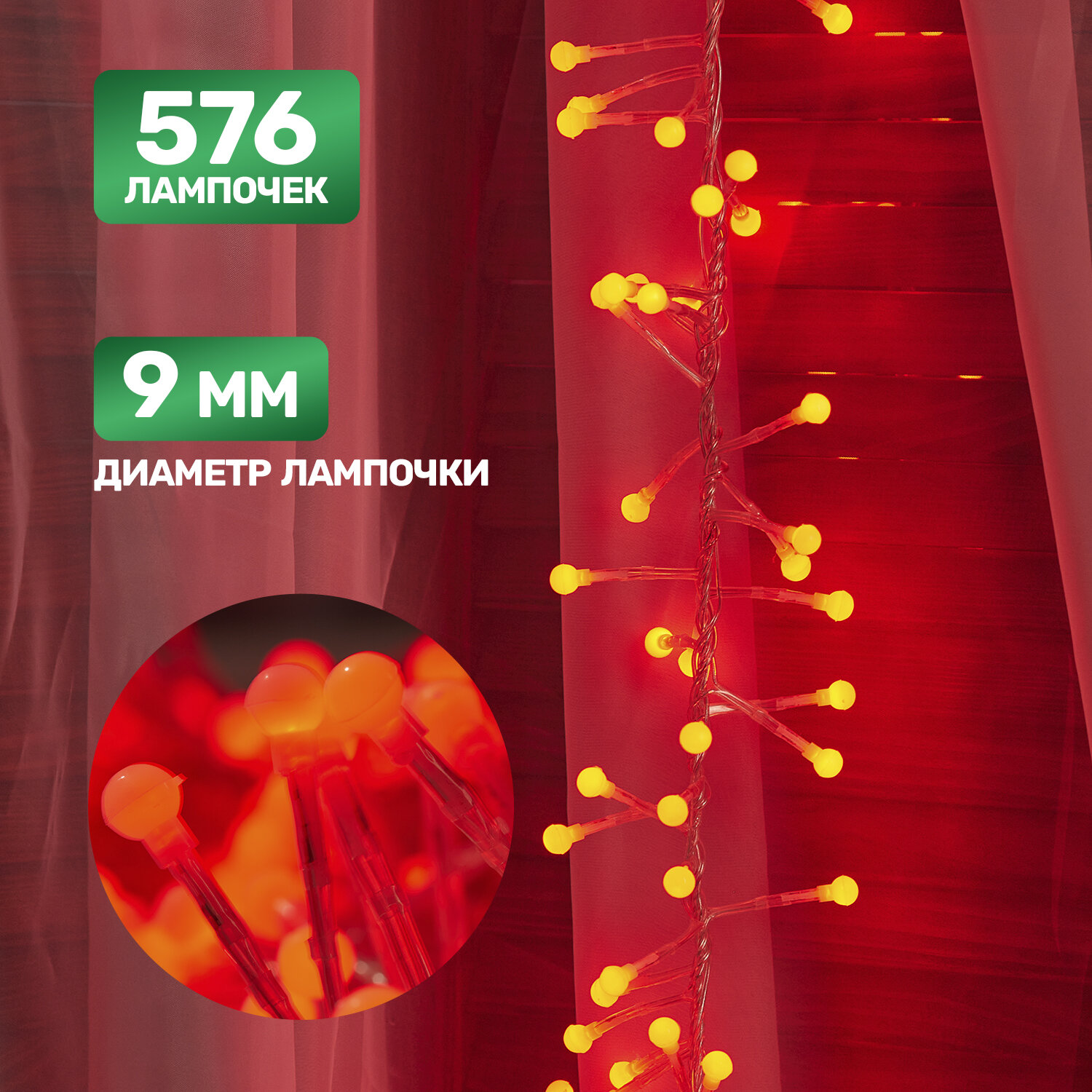 Гирлянда "Мишура LED" 6 м прозрачный ПВХ, 576 диодов, цвет красный
