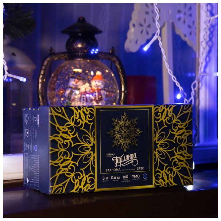 Гирлянда «Бахрома» 3 × 0.6 м, IP44, УМС, белая нить, 160 LED, свечение синее, мерцание белым, 220 В информация:
