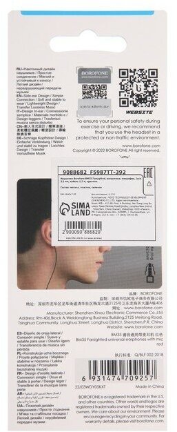 Гарнитура BOROFONE BM35 Farsighted 3.5 мм, внутриканальная, 1.2м (черный)