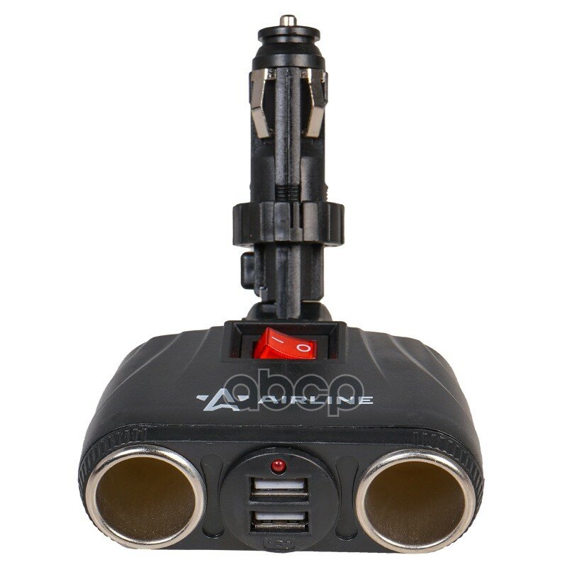 Прикуриватель-разветвитель AIRLINE ASP-2TU-08, трансформер, штекер-фиксатор, 2 гнезда + 2USB 735 ₽