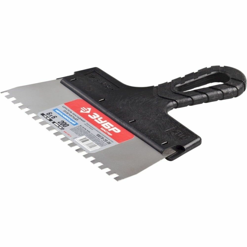 ЗУБР 200 мм, зуб 6х6 мм, зубчатый пластиковая ручка, нержавеющий, Фасадный шпатель, мастер (10078-20-06) информация: