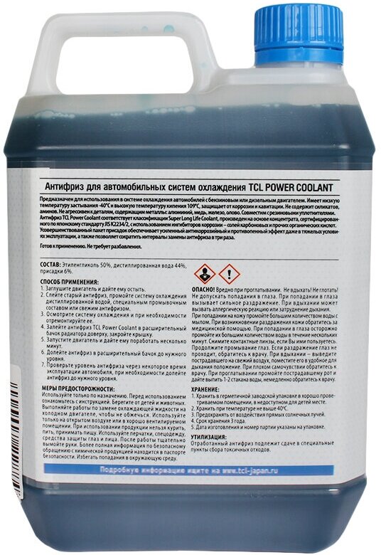 TCL PC240B антифриз TCL POWER COOLANT -40C синий, длительного действия, 2 л