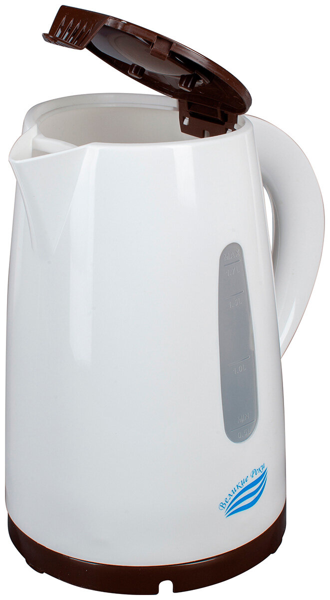 Чайник электрический Великие Реки Томь-1 бел/коричневый, 1,7 л, пластик, 1850 Вт