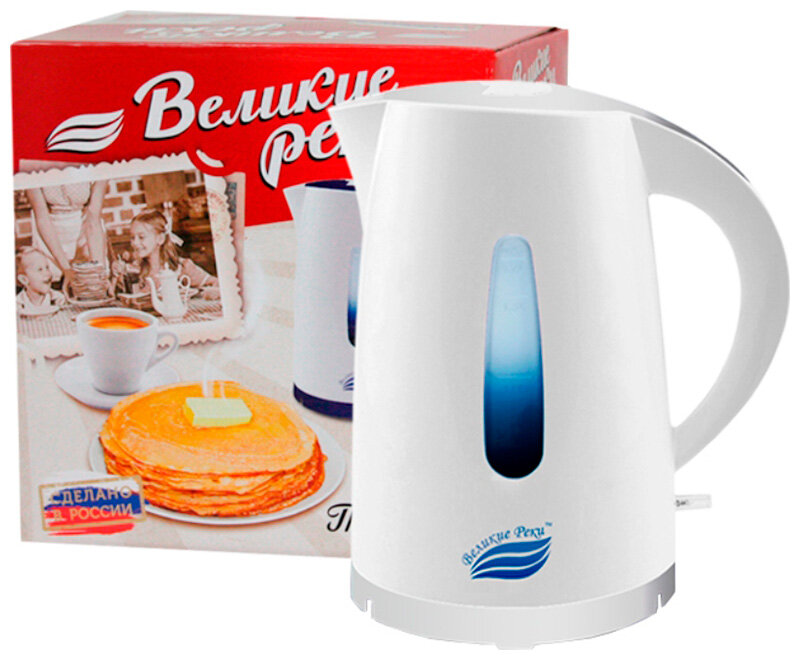Чайник электрический Великие Реки Томь-1 белый, 1,7 л, пластик, 1850 Вт