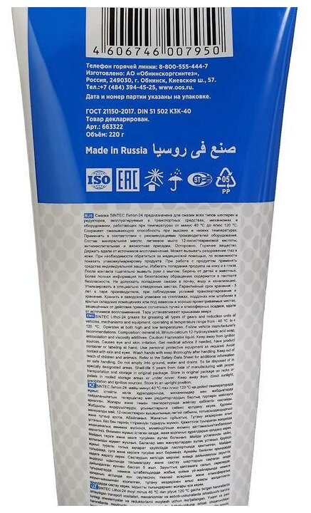 663322 SINTEC Смазка литол-24 в тубе (250г.) Sintec 663322
