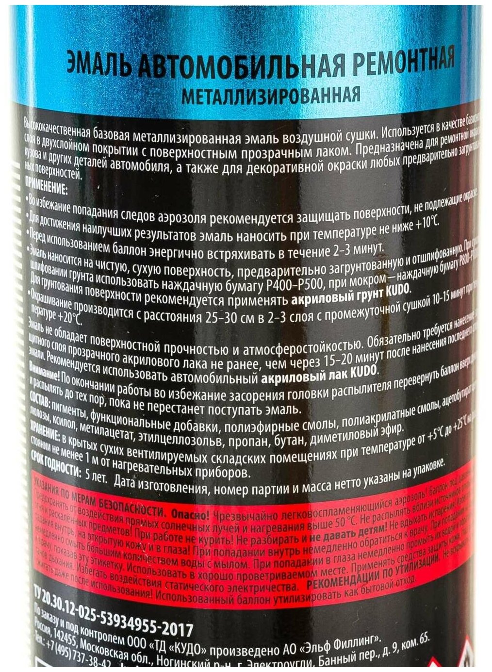KUDO KU41495 Эмаь автомобиьная ремонтная метаизированная унный свет 495 520 м