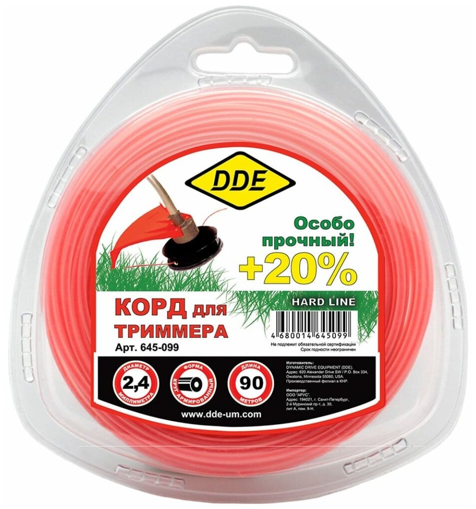 Отзывы на DDE Корд тримм в блистере Hard line круг армированный 2,4мм х 90м 645-099 .