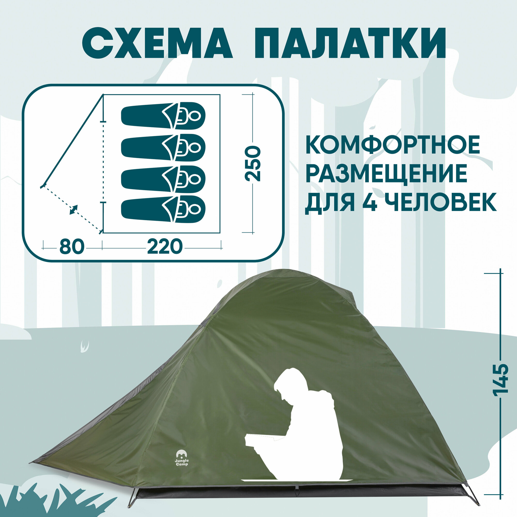 Палатка Jungle Camp Dallas 4, цвет зеленый информация: