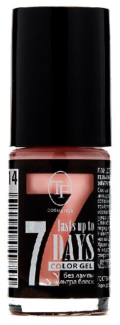 TF Cosmetics лак для ногтей 7 days Color Gel, 8 мл, №296 персиковый беж 137 ₽