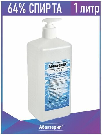 20 шт. Кожный антисептик с вирулицидной активностью ГОСТ 12.1.007-76 Абактерил-Актив с насос-дозатором 1 л.