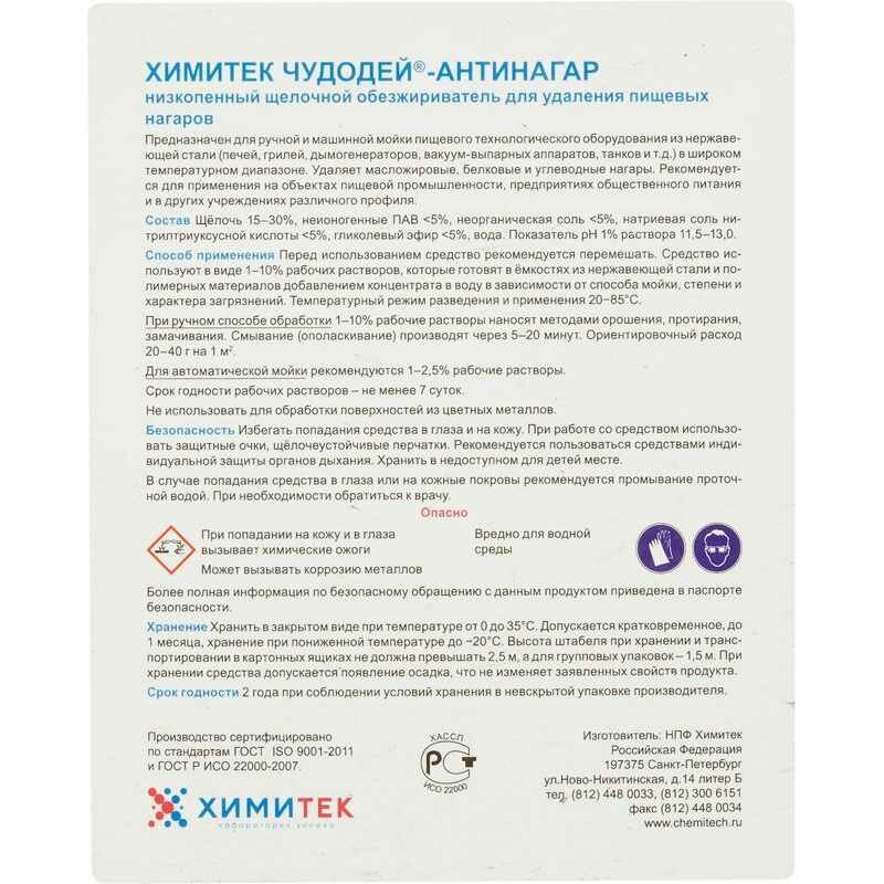 Профхим д/пароконвект д/автомат-руч удал.нагар химитек/чудодей-антинагар,5л информация: