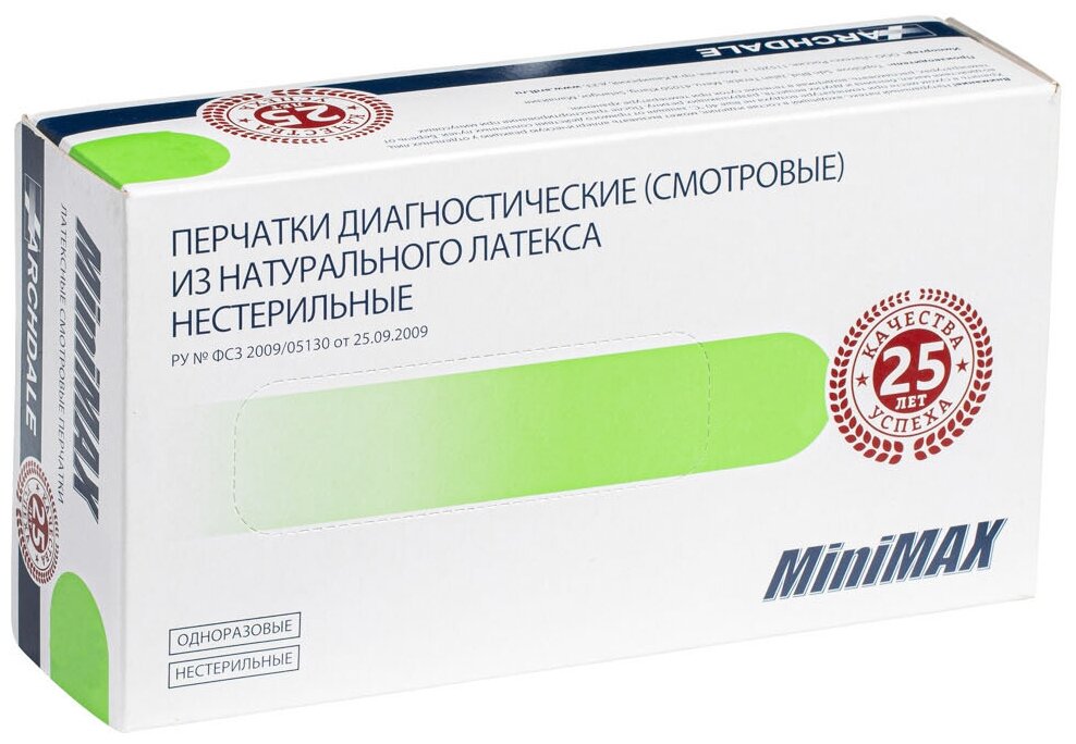 10 цен на Перчатки диагностические смотровые MiniMAX, ARCHDALE, 100 шт., ХS, натуральный латекс, нестерильные, одноразовые
