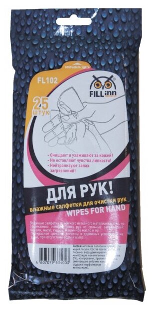 FILLINN FL102 Влажные салфетки для рук в сашетах, 25 штук 1шт информация:
