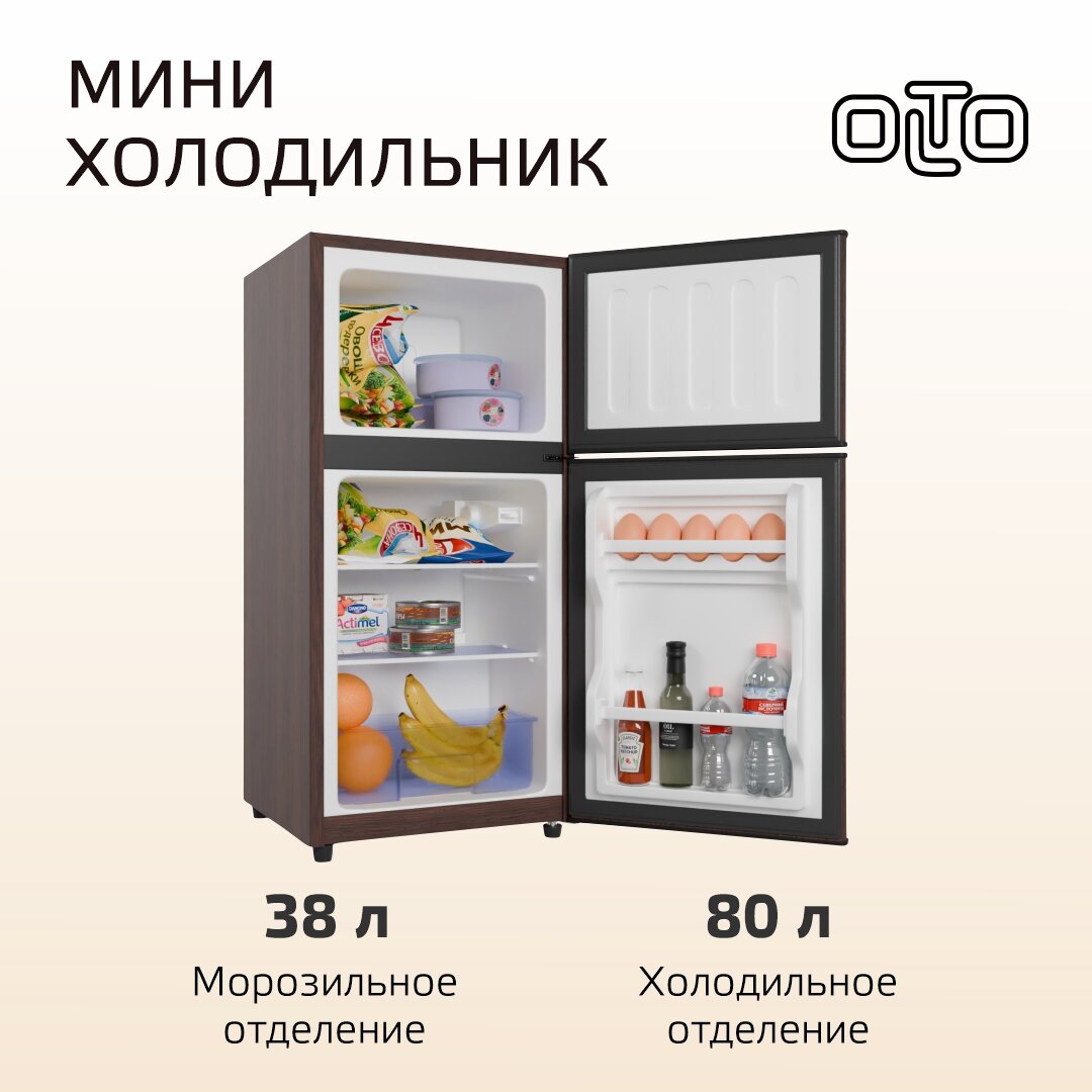 Olto Холодильник OLTO RF-120T, двухкамерный, класс А+, 118 л, коричневый 25 506 ₽