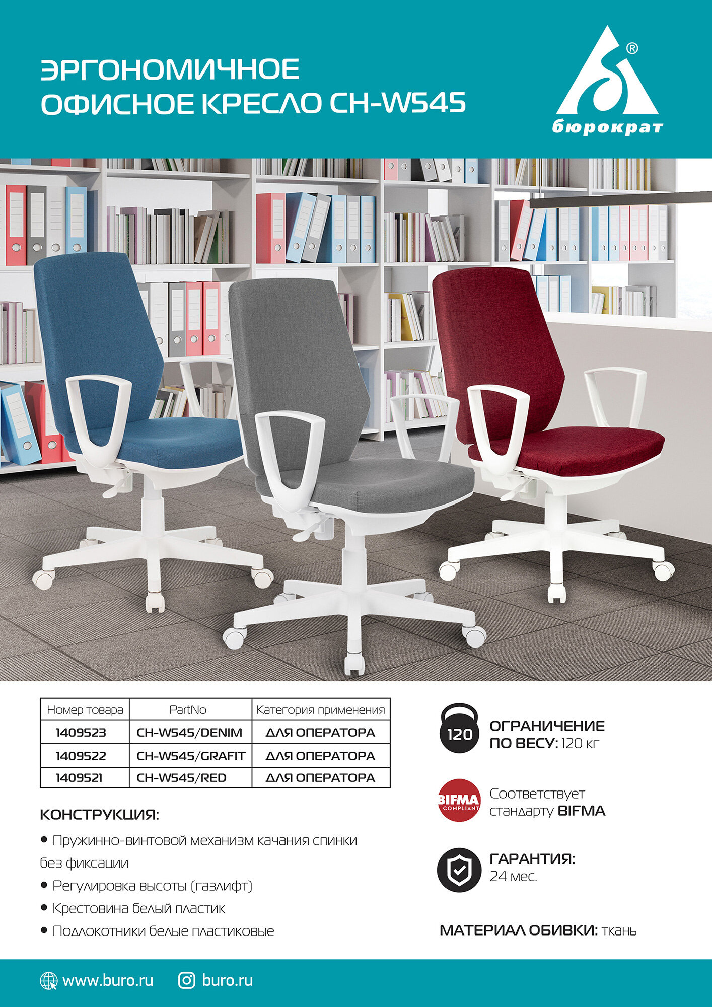 Отзывы на Кресло Бюрократ CH-W545 красный 38-410 крестовина пластик пластик белый