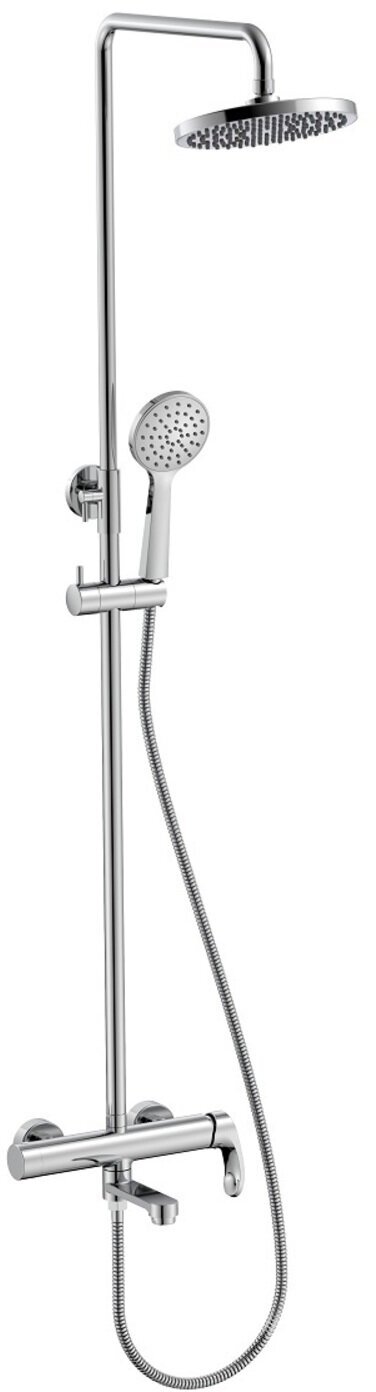 Душевая стойка с верхней тропической лейкой и смесителем для ванны/душа (короткий излив) Iddis 001SB3Fi06 хром круглая