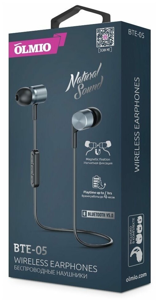Наушники внутриканальные беспроводные Olmio BTE-05, Bluetooth 5.0, черные