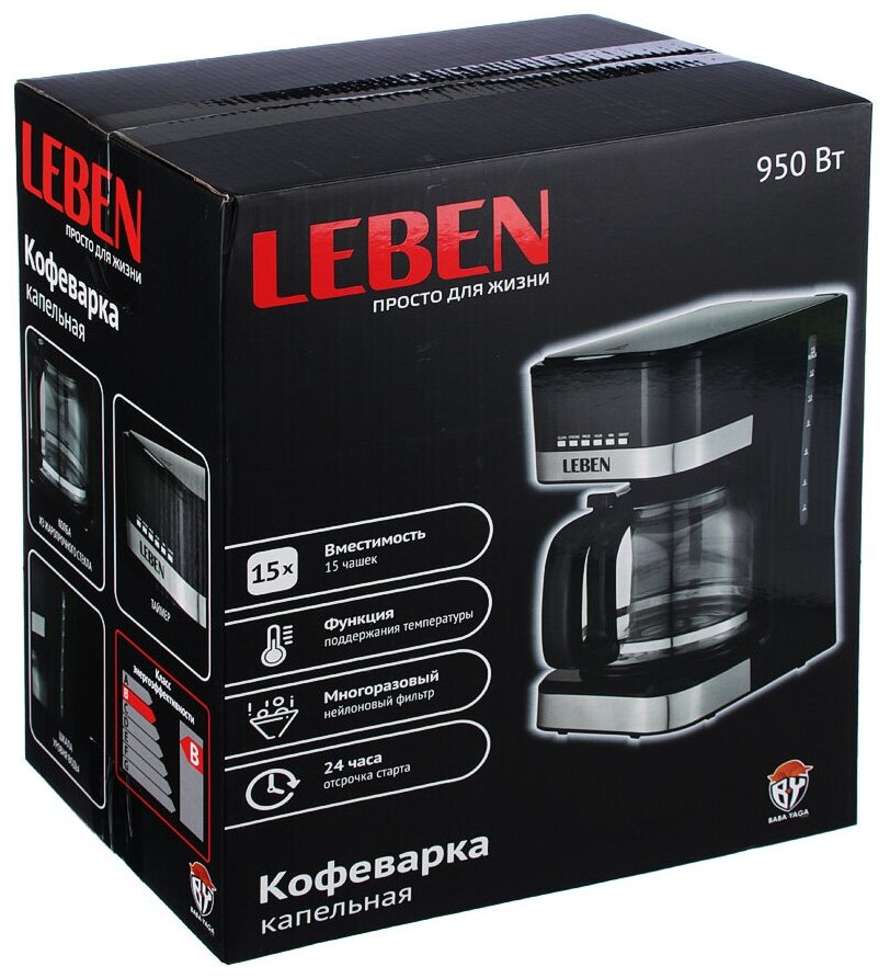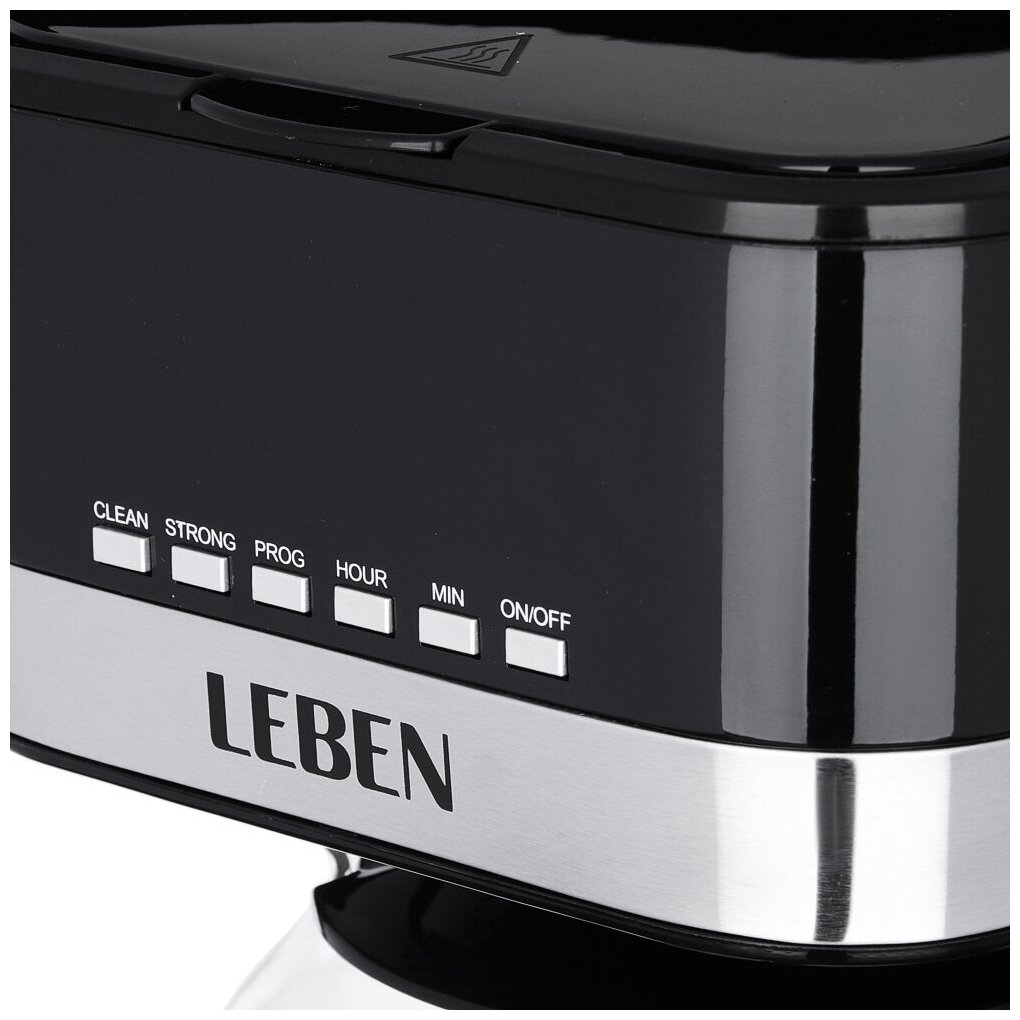 LEBEN Кофеварка капельная с таймером 24 ч., стеклянная колба 1,8 л, корпус пластик, отделка нерж информация: